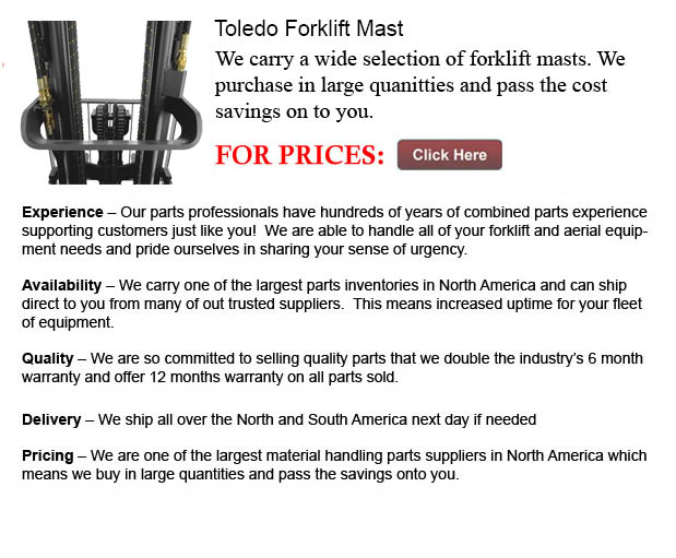 Forklift Masts Toledo - Toledo is a city located on Lake Erie in the northwestern part of the state of Ohio, United States. Toledo City is near the border between Michigan and Ohio. Toledo is the county seat of Lucas County. The city of Toledo is named "Glass city" because of its history of glass manufacturing.